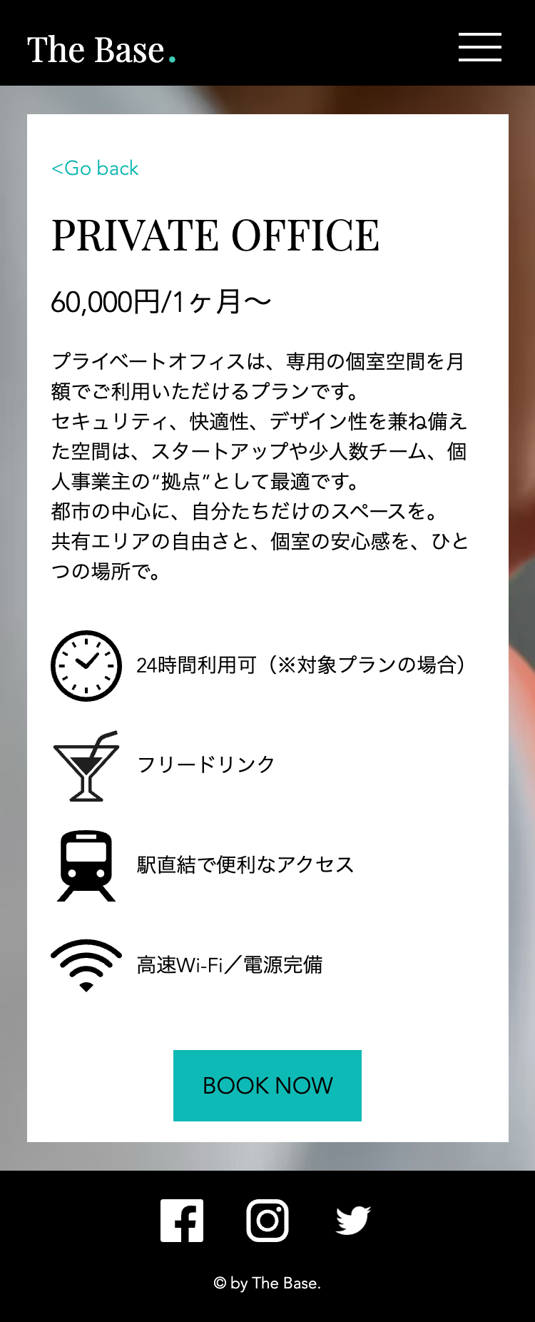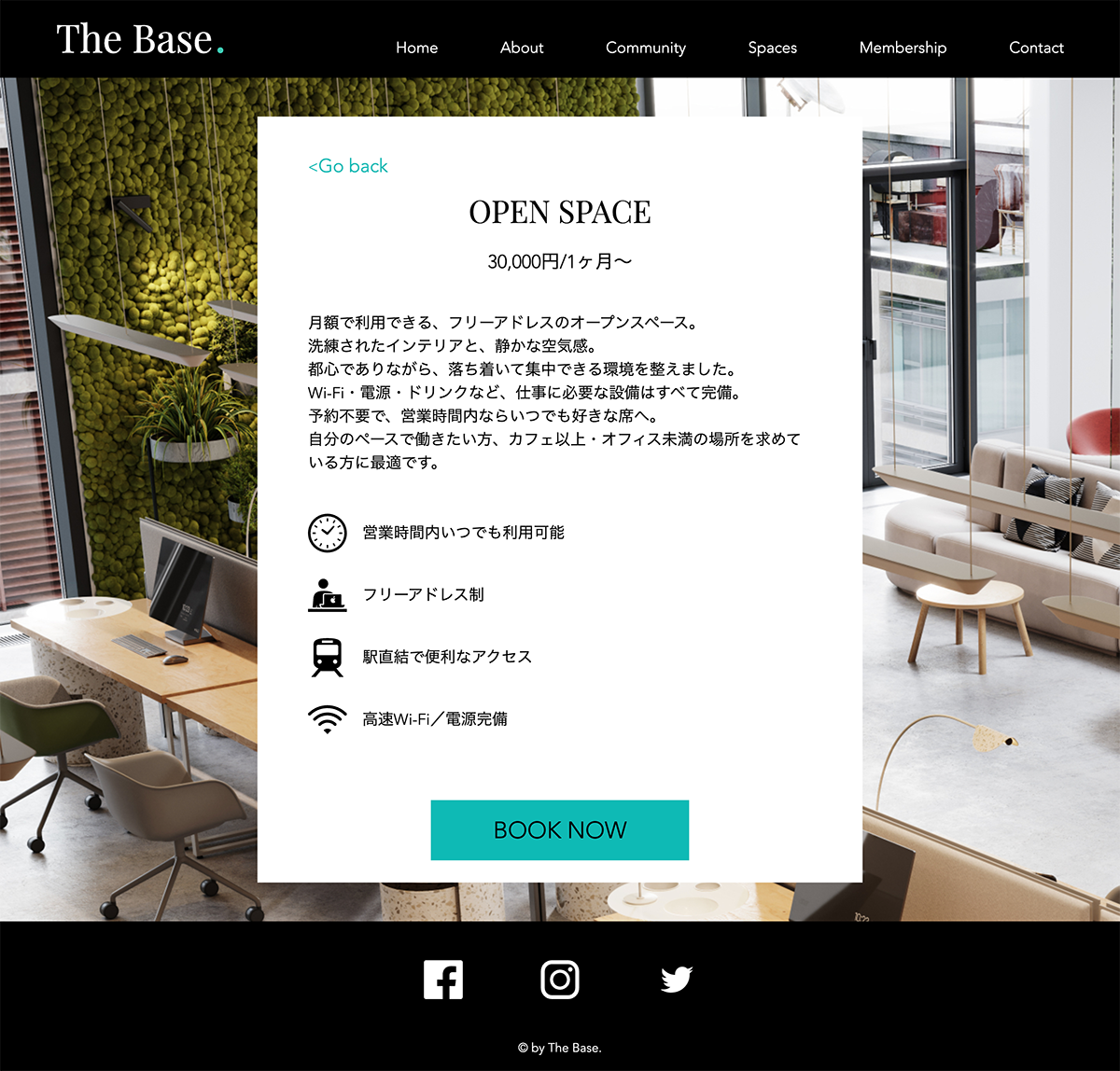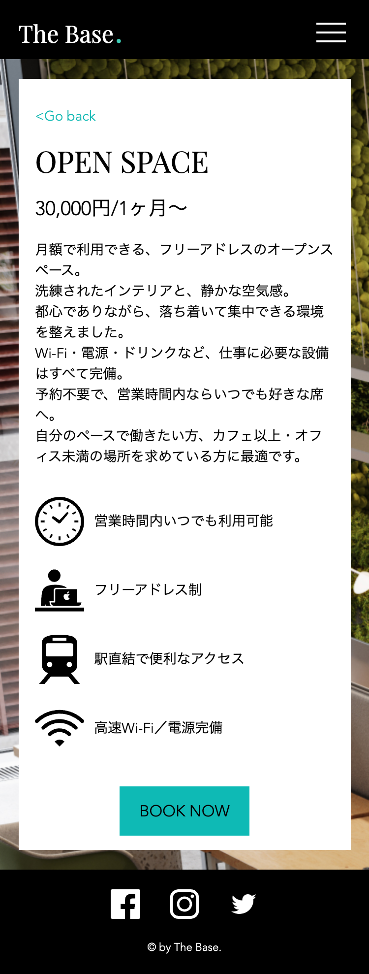 また、TOPページの文字での情報量を少なめにし、画像からの情報量を多めにすることで、実際のコワーキングスペースを画像の雰囲気から直感的に感じることができ、毎日忙しく働いているターゲット層の方々が時間をかけて文章を読まずとも興味を持っていただけるような構成を意識しました。