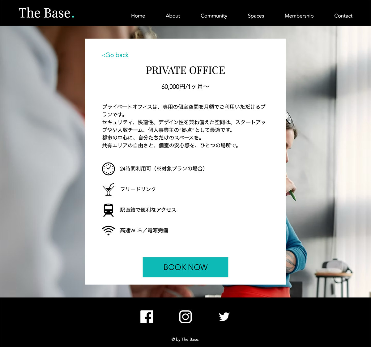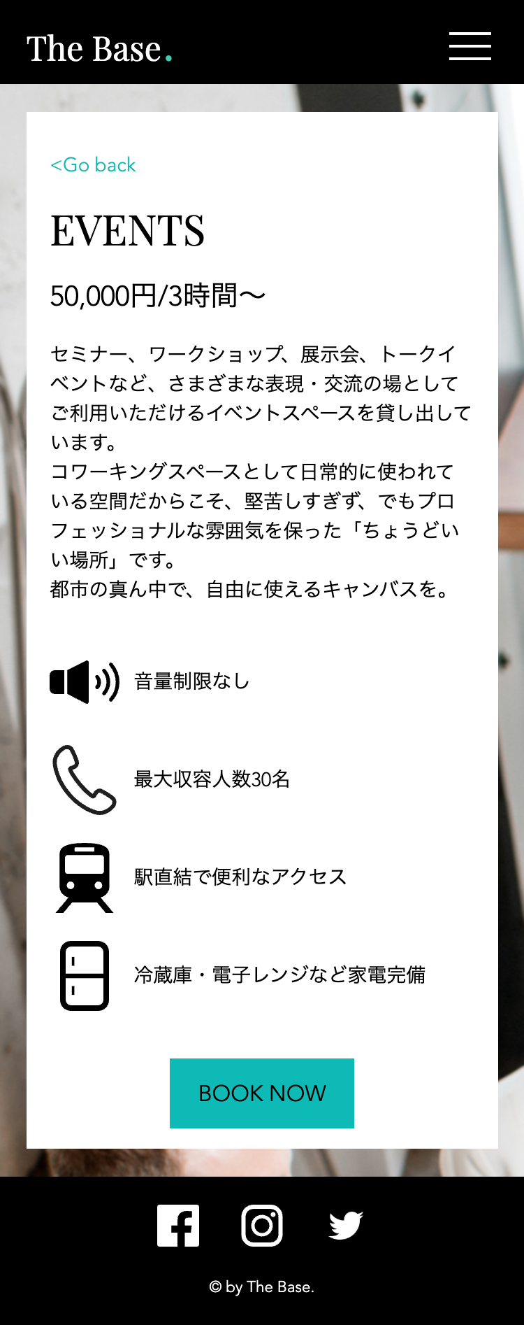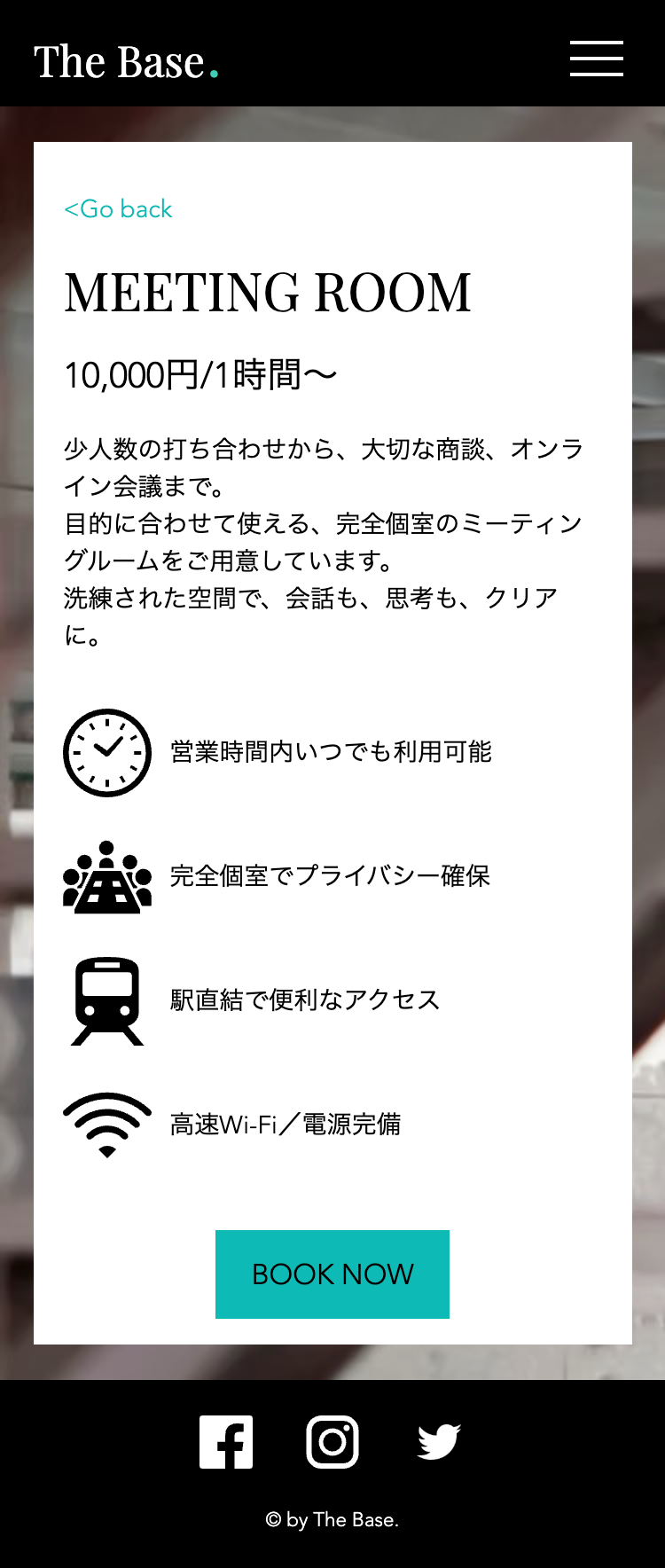 また、TOPページの文字での情報量を少なめにし、画像からの情報量を多めにすることで、実際のコワーキングスペースを画像の雰囲気から直感的に感じることができ、毎日忙しく働いているターゲット層の方々が時間をかけて文章を読まずとも興味を持っていただけるような構成を意識しました。